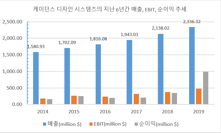 매출 연평균복합성장율은 10.31%로 케이던스보다 좀 더 성장폭이 크다. EBIT마진율은 2014년 13.23%에서 2019년 16.23%로 대체로 우상향. 8월 19일에 발표한 회계년도 3분기(7월 31일 마감) 실적과 이에 따른 투자지표를 보자. 2020년 8월 21일 종가 $213.1 기준.